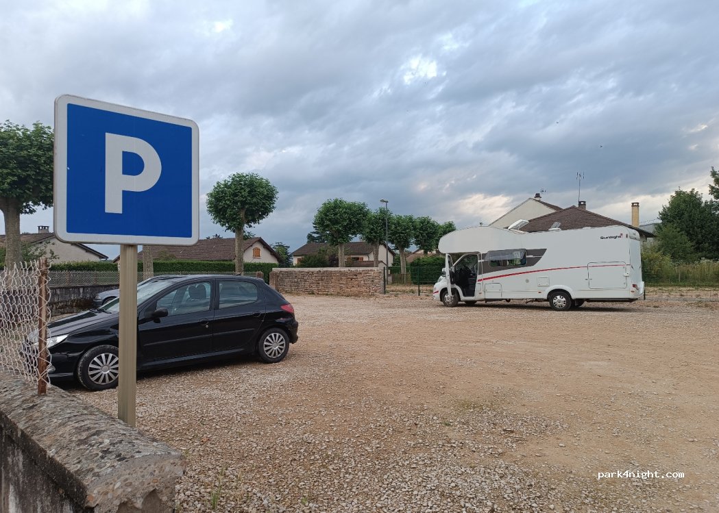 Petit parking en face de l’Ehpad et à 100m un plus grand sous les platanes. Nuit calme . Plus sécurisé que l’aire de Tournus