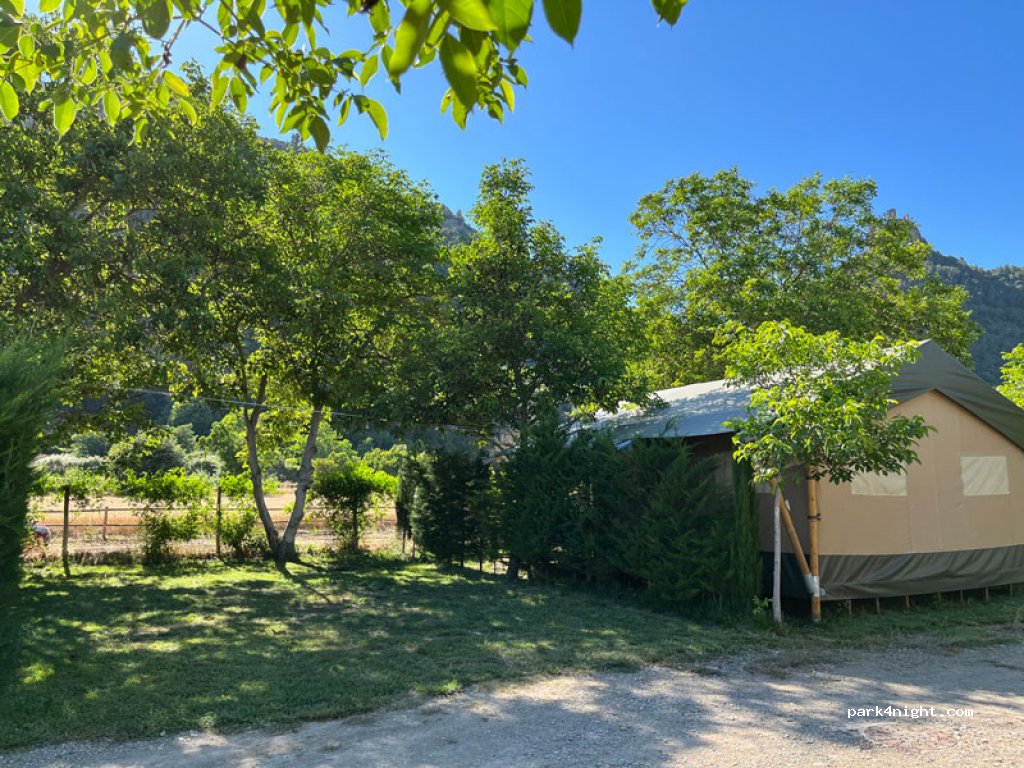 Ideale stop voor campers! Kleine, rustige camping met veel schaduw, in een typisch Spaans dorpje in de Pyreneeën.