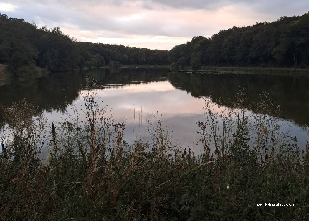 Endroit très agréable avec petite promenade autour du lac, jeux pour enfants à 5 minutes à pied dans les bois. Nous nous sommes garés avant la barrière des 2 m à côté de la table de pique nique . La rue est un peu passante au petit matin mais l endroit est vraiment chouette .