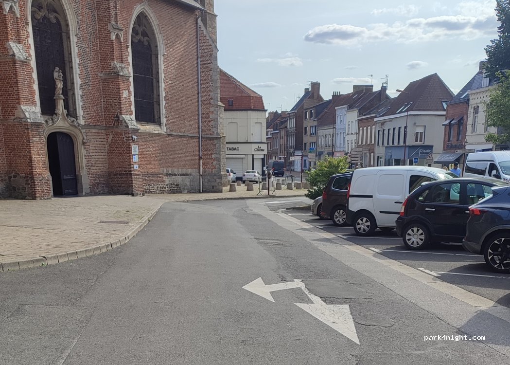 Parking de l'église, à côté du jardin public. 2h max.
