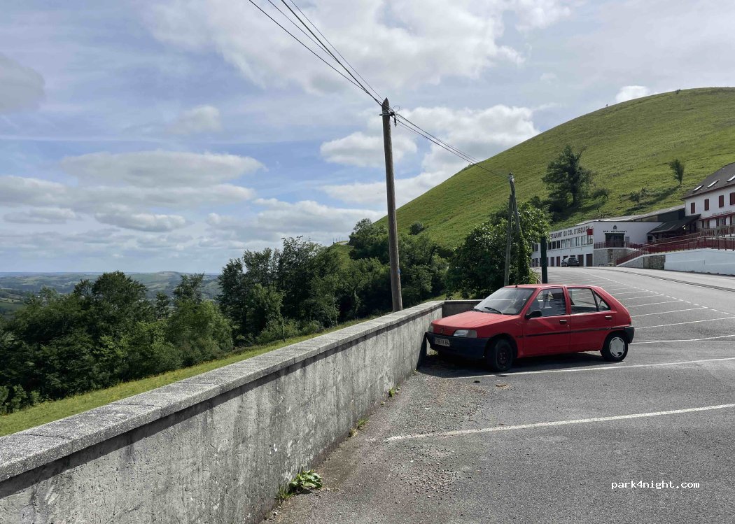 Parking sur un bel endroit. Bonne vue. Certains endroits mesurent 7 à 8 m de long et 2,7 m de large. Calme le soir et la nuit, calme occupé avec des voitures passant sur la route à partir de 6h30.