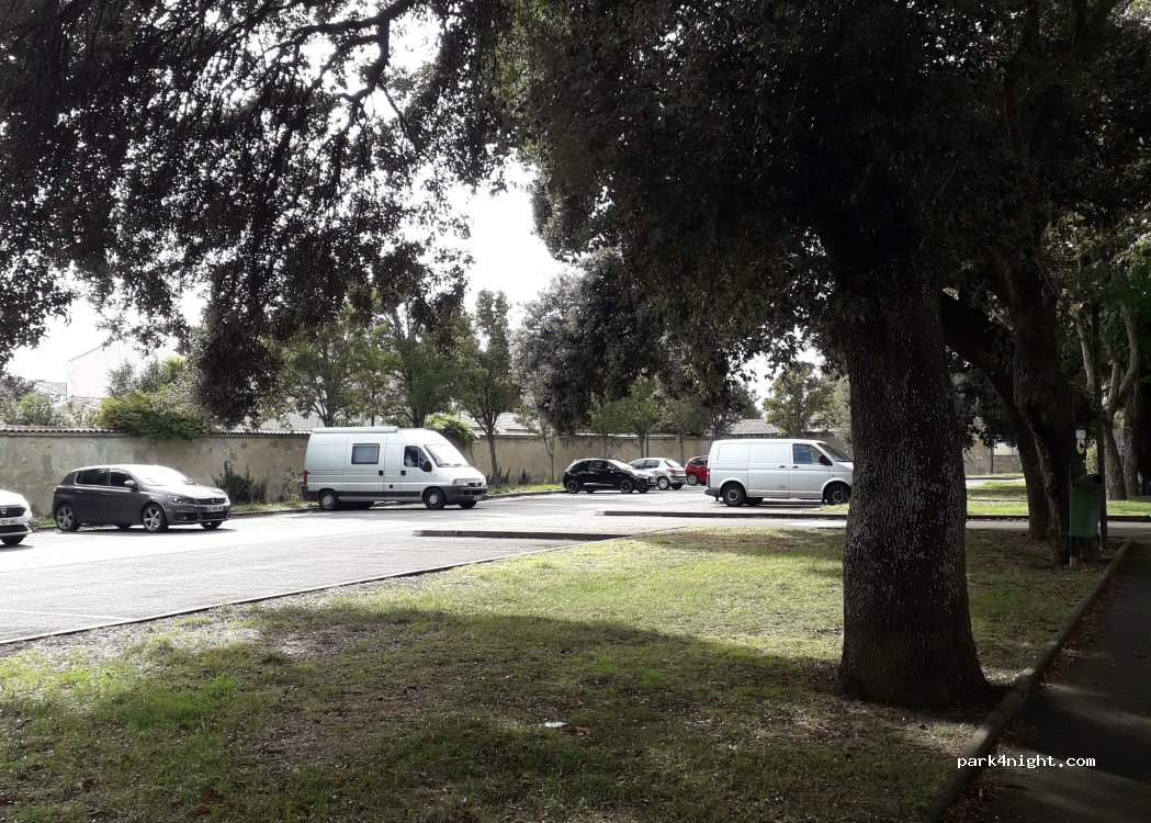 Lovely peaceful spot at the back of the car park. Three of us there. Very useful for a quick and easy drive into La Rochelle. Thanks to the municipality.