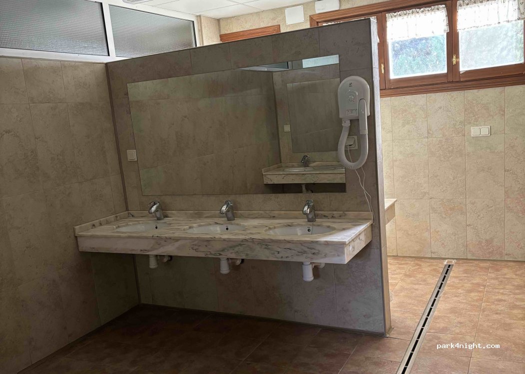 Todo muy bien… agua caliente, baños limpios y amplios además de contar con secador. Fregaderos, lavaderos, baño bebés, wc químico. Abierto todo el aÑo. Pasamos dos noches y ya tengo un sitio de referencia cuando vaya por la zona. Fuimos en noviembre y se agradecía la temperatura de las instalaciones, todo muy tranquilo con supermercado, hotel y cafetería a 50m a las afueras del camping. Muy recomendable