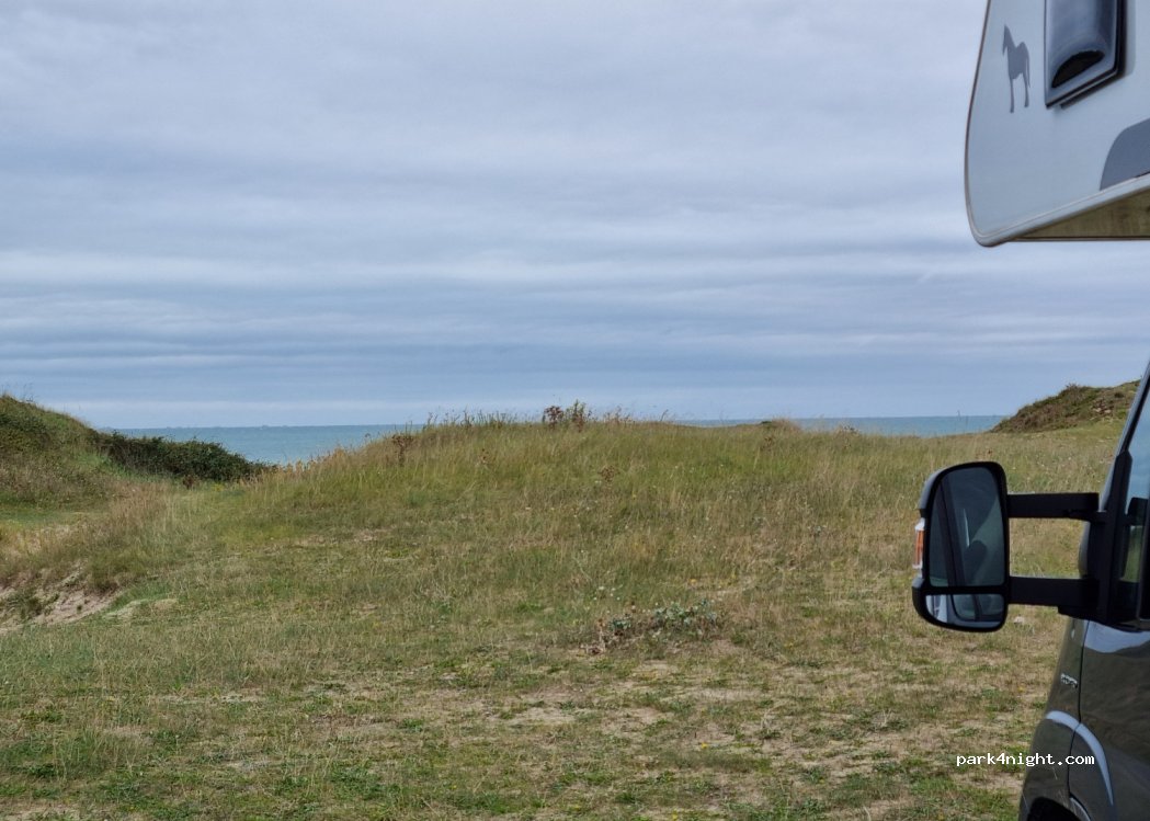 Schöner Stellplatz ohne V/E, leicht windgeschützt in den Dünen mit direktem Zugang zum Strand. Keine Beschränkungen. Man sieht das Meer durch die Dünen. Im der Nachsaison fast leer. Gegenüber das Hippodrome - wenn da was los ist, wird es hier voll sein.