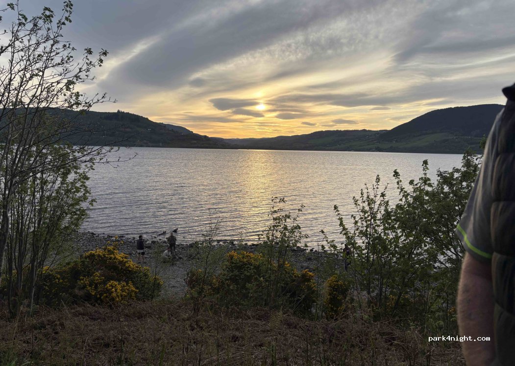 Fine little spot, just a lined off lay-by so can rattle a bit when big vehicles going past. A little steep path down to the shore of Loch Ness