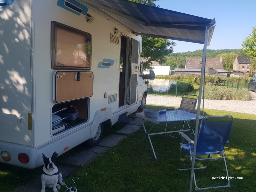 Underbar liten familjecamping med vänlig värd. Här finns toalett och dusch, diskar gör man under tak utomhus, charmigt. En liten konstgjord sjö att fiska vid och en pool finns i området. Perfekt för min lilla chihuahua Viggo som även fick en ny liten fransk vän i familjens lilla hund. Stort plus för wifi. Vi återkommer gärna om vi har vägarna förbi fler gånger.