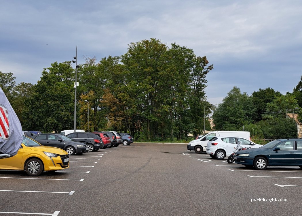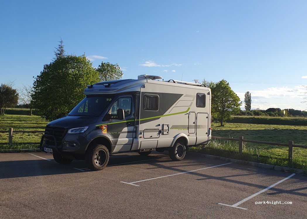 Très grand parking non la ville, pas loin du restaurant et de la boulangerie. Parfait pour une journée ou une nuit calme.