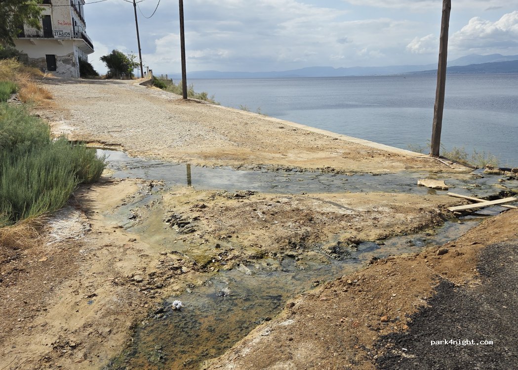 Aspetto positivo, le terme e il mare bello. Il parcheggio è in pendenza e sei visto male dalla gente del posto. L'acqua si puó prendere nei giardinetti che si incontrano sulla destra andando verso il centro.