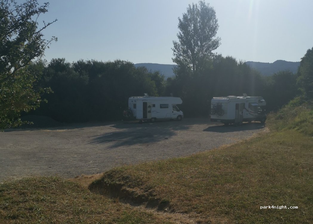 Nous avons dormi sur un autre parking, assez grand, un peu plus loin sur la même route. Proche de l'autoroute mais le bruit est léger. Pas de charme particulier mais ok pour une nuit !