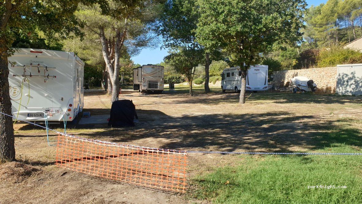 Situado a 20 minutos de Aix en Provence y Lubéron, zona privada limitada a 5 autocaravanas.
