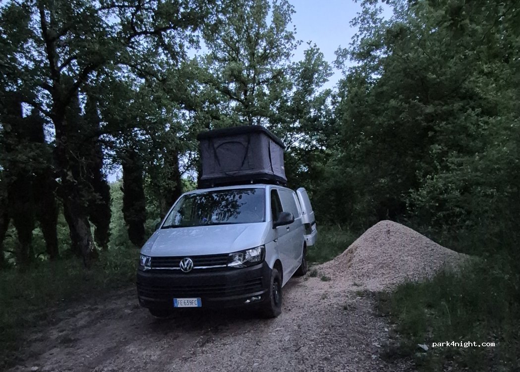 Superbe endroit où dormir avec une joli vue sur la campagne Toscane. Coin d’ombre et pas trop de passage de véhicule. Pas de service. Attention aux moustiques en été qui sont nombreux. On recommande.