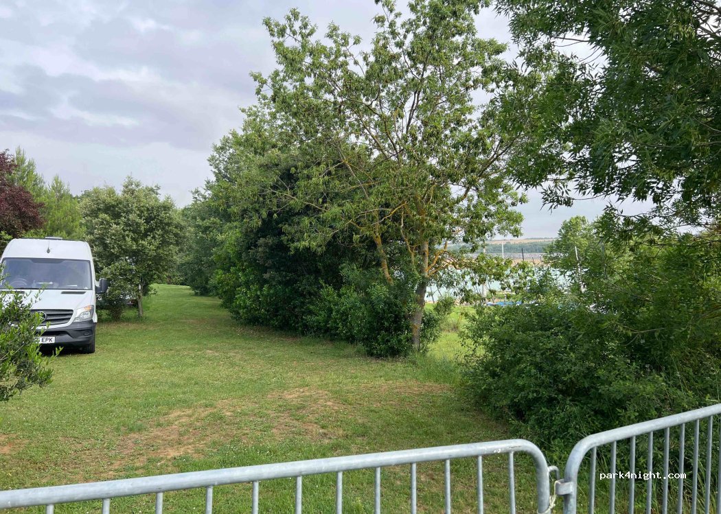 grand parking avec places sur herbe à 10 euros la nuit avec vue sur le lac idéal pour passer une ou 2 nuits. merci à la commune et au club de voile.