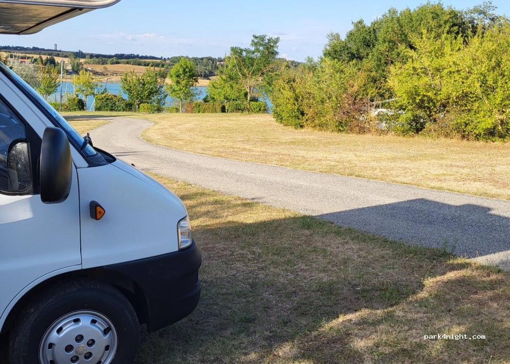 Endroit très sympa . Super pour les enfants et les chiens . Prévoir les cales . Très bon accueil au bar associatif . Spectacle des kitesurfeurs. Attention aux moustiques. 10 € la nuit . Éviter d’arriver par Villefranche du lauragais par le village de Belflou mais plutôt du côté de Castelnaudary .