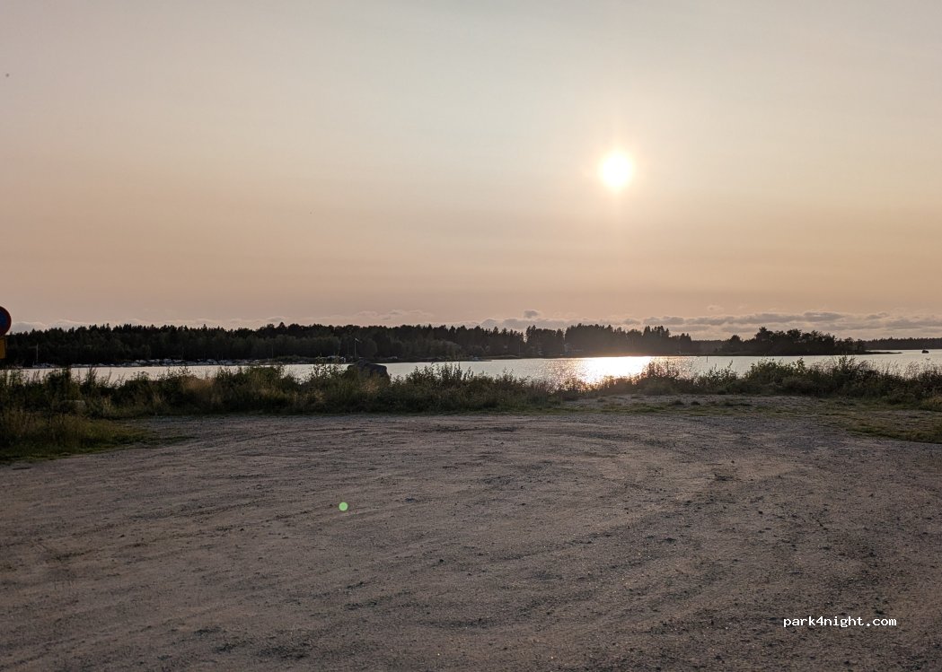 Parking place next to swimming beach and a small harbour. Quiet place and beautiful sunset. Good place to stay over night.