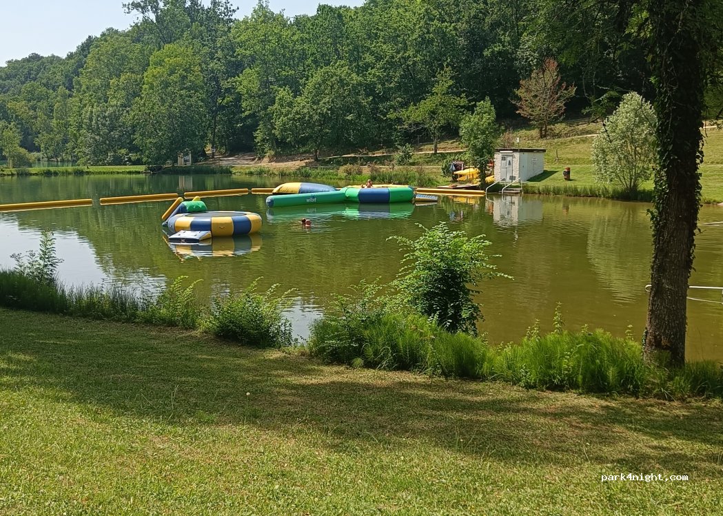 Zoveel om je te amuseren op de camping. In het ene deel van het meer kan je (gratis!) kajakken of suppen. In het andere deel zijn een glij- en springkussen. Je kan ook afwisselen met het zwembadje. Voldoende plaatsen en stoelen in de schaduw op het gras of op het strandje. Leuk wandelingetje naar het restaurantje om een ijsje te eten, te aperitieven of te dineren. De eigenaars tipten een leuke wandelroute naar en van het dorp. We leken de enigen zonder hond. De camping is heel toegankelijk voor honden. Op de wandelroutes in het bos jammer genoeg heel veel hondenkaka. Superproper sanitair!