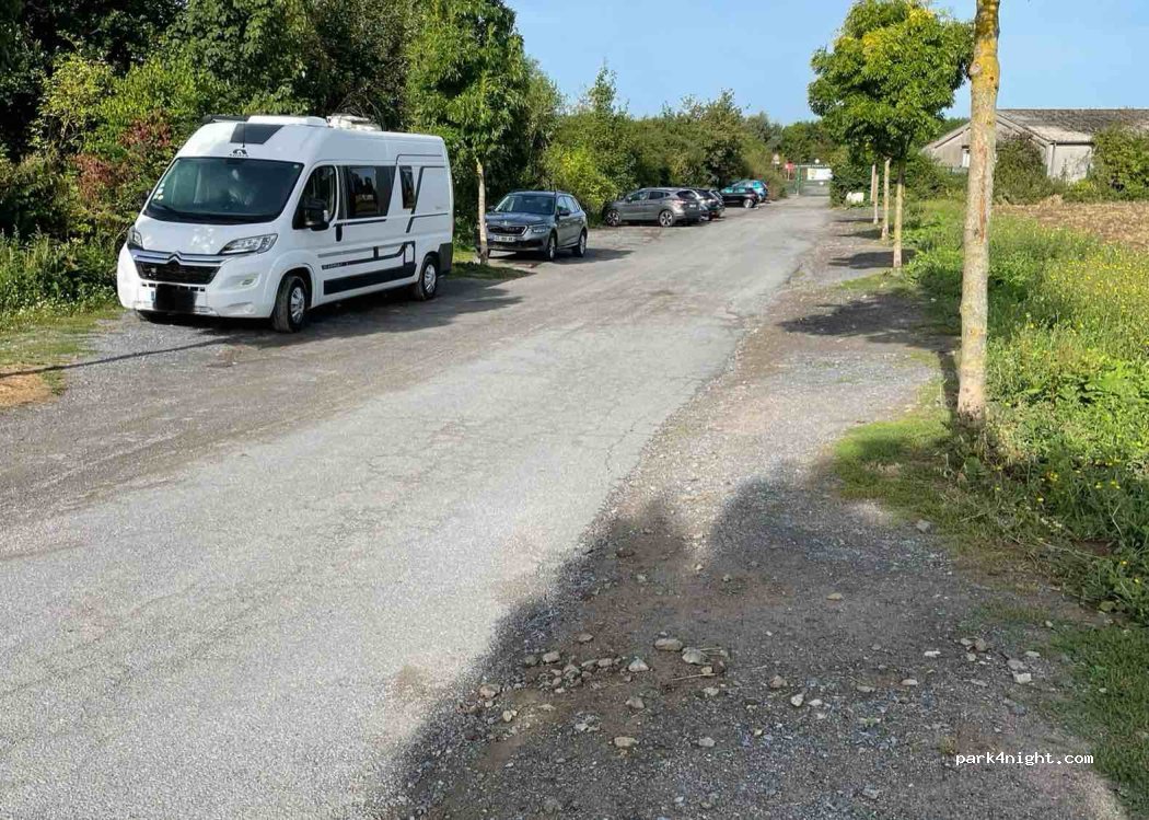 très bon spot pour une nuit. une grande balade et des champs autour pour votre chien, une marche ou du footing. un espace ferme pédagogique et bar sur le chemin à côté avec un très bon accueil. un peu de passage de voiture en soirée et tôt le matin mais calme le reste de la nuit.