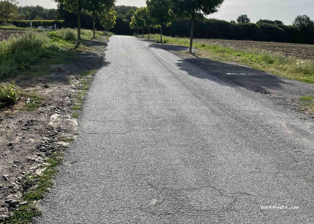 Erg rustige plaats, zeker 20 parkeerplaatsen, geen hoogte beperking. Rustig tussen de graanvelden. Best ergens tussenin staan en niet op het einde bij het hek, er hangt daar een camera. mooie plek!