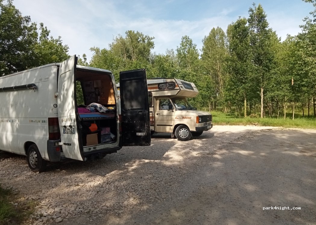 Joli endroit près de l'étang, le seul hic, c'est la route assez passante (la nuit aussi) qui borde l'endroit. Nous étions 3 vans, il y a en fait plus de 2 places si on se gare sur le côté du chemin, dans l'herbe.