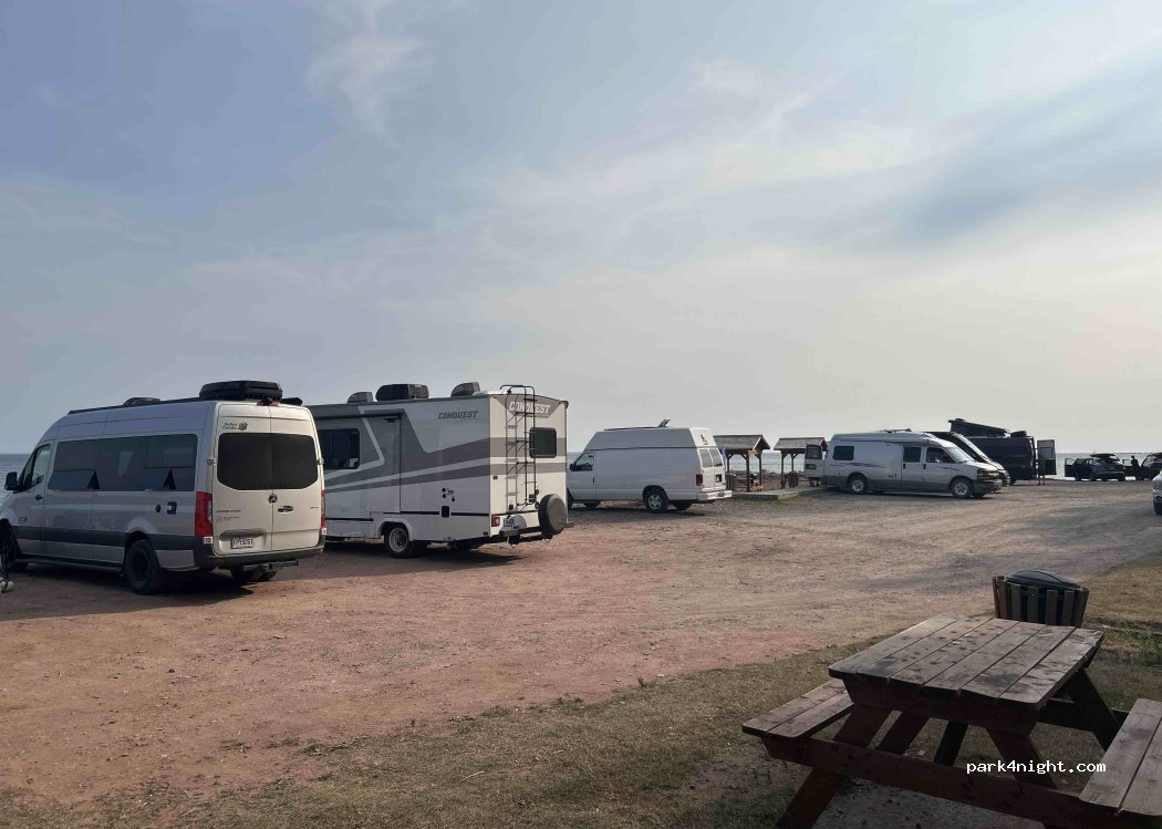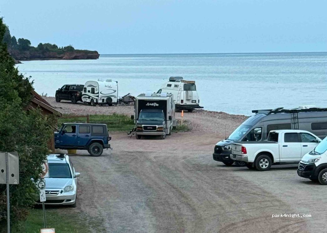 le plus bel endroit où j'ai pu dormir, couché de soleil avec des couleurs incroyables, levé de soleil pareil !! plage magnifique , le lieu est propre, table de picnic, poubelle, toilette sèche, il y a même une personne qui vient les nettoyer le matin !! beaucoup de place de stationnement, calme, sécuritaire. Prenons soin de cet endroit !!!