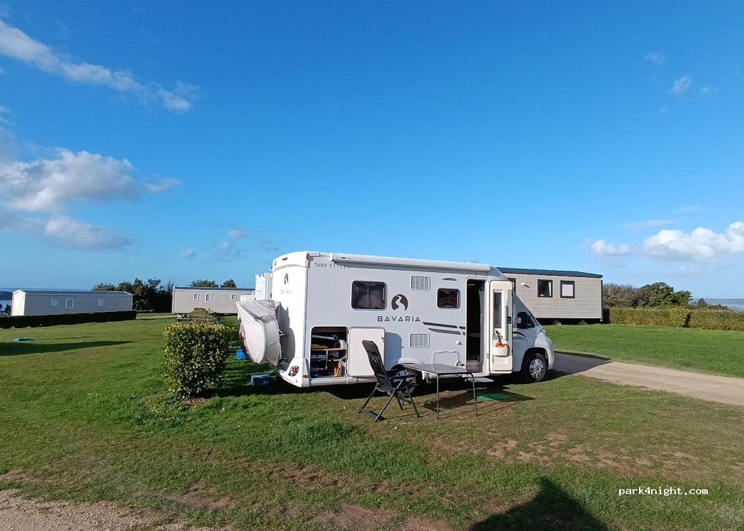 Ein wunderbarer Platz mit Aussicht auf das Meer, 15€ pro Nacht mit Entsorgung und Sanitäranlage mit warmen Duschen, ganzjährig geöffnet, zu meiner Freude jetzt im Oktober Es wird Englisch gesprochen Mobilhomes zum Mieten und Rasenflächen für alles anderen Abends sitzt man herrlich bei untergehender Sonne. Strand ist in Laufnähe, danke