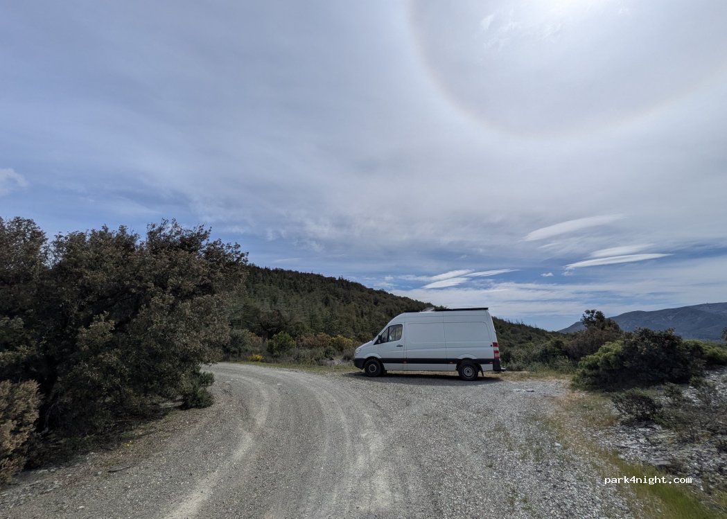 Très jolie spot avec une belle vue, nous avons passé une nuit au calme, très très peu fréquenté (juste deux voitures sont passés dans la soirée et dans la journée ). Idéal pour laisser vos chiens en libre (attention toutefois quelques épillets). Accessible pour les fourgons aménagé (type Iveco Daily).