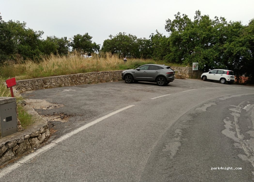 Camping prohibited well marked at the beginning of the road and often the police gives fines. Noisy and dangerous because it is right on a hairpin bend. Not recommended.