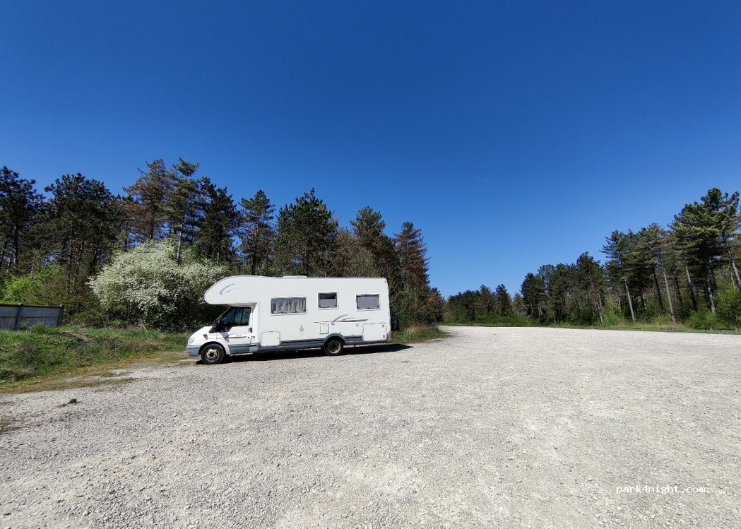 Contrairement à ce qui est indiqué, la nuité est tolérée par le propriétaire. Il faut se positionner au fond du parking et surtout laisser celui-ci propre. Dommage d'y avoir trouvé des couches dans l'herbe mais il n'y a malheureusement aucune poubelle sur le parking.