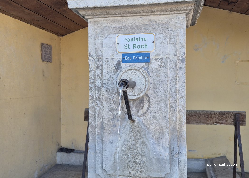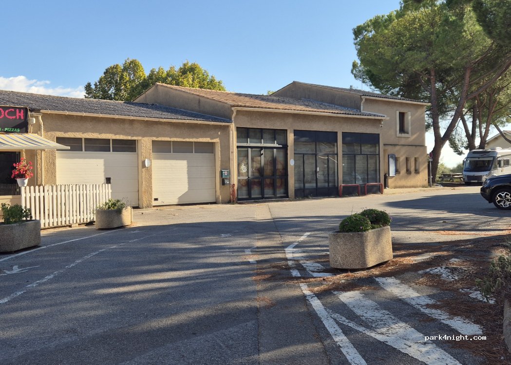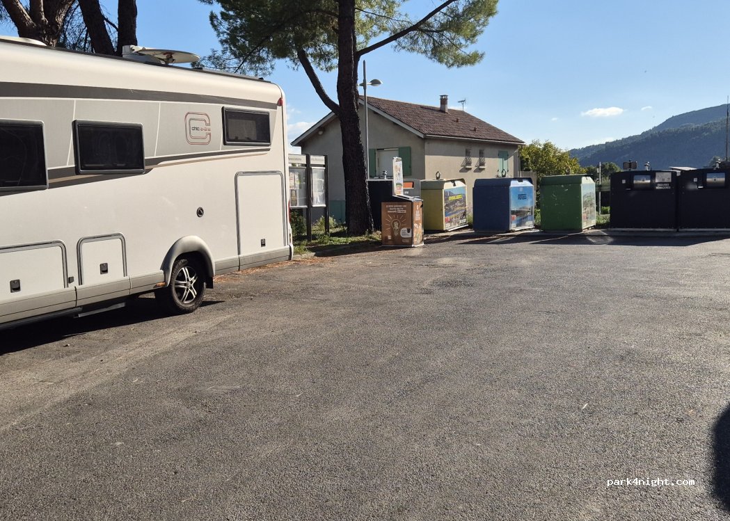 Parking gratuit à l'entrée du village de Peyruis. Possibilité de dormir. En bord de route mais avec de nombreuses commodités. WC, poubelles, table, bancs et eau potable à 50 m. Bars, restaurants, alimentation et tous types de commerces.
