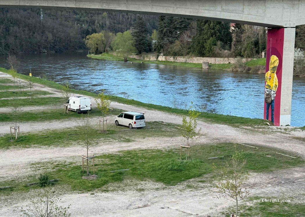 Schöner Platz direkt an der Loire. Kein Service - den gibt es dafür am Bahnhof umsonst. Was braucht man mehr. Update: Freitag Nachmittag wurde der Parkplatz zur Auto-Teststrecke. Lieber das Weite suchen...