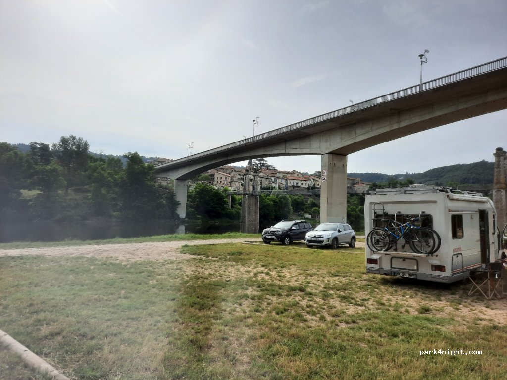 Parking très agréable vue sur la Loire. Calme la nuit ! le parking est seulement payant le week-end, 3€ pour la journée. la petite base loisirs d'Aurec est super, on peut y faire du canoë, louer des bateaux électriques et même y faire du trot kayak. Petit plus pour le petit foodtruck ou ils vendent que des produits locaux, c'était super bon et les saisonniers sont vraiment très gentils.