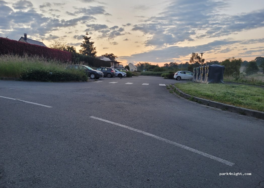 Parking sympa, un peu en pente, assez loin de la route pour être au calme, petit parc au bord de la rivière pour promener les chiens. Le restaurant au bout du parking sert des plats pas trop chers et il y a une ambiance au top