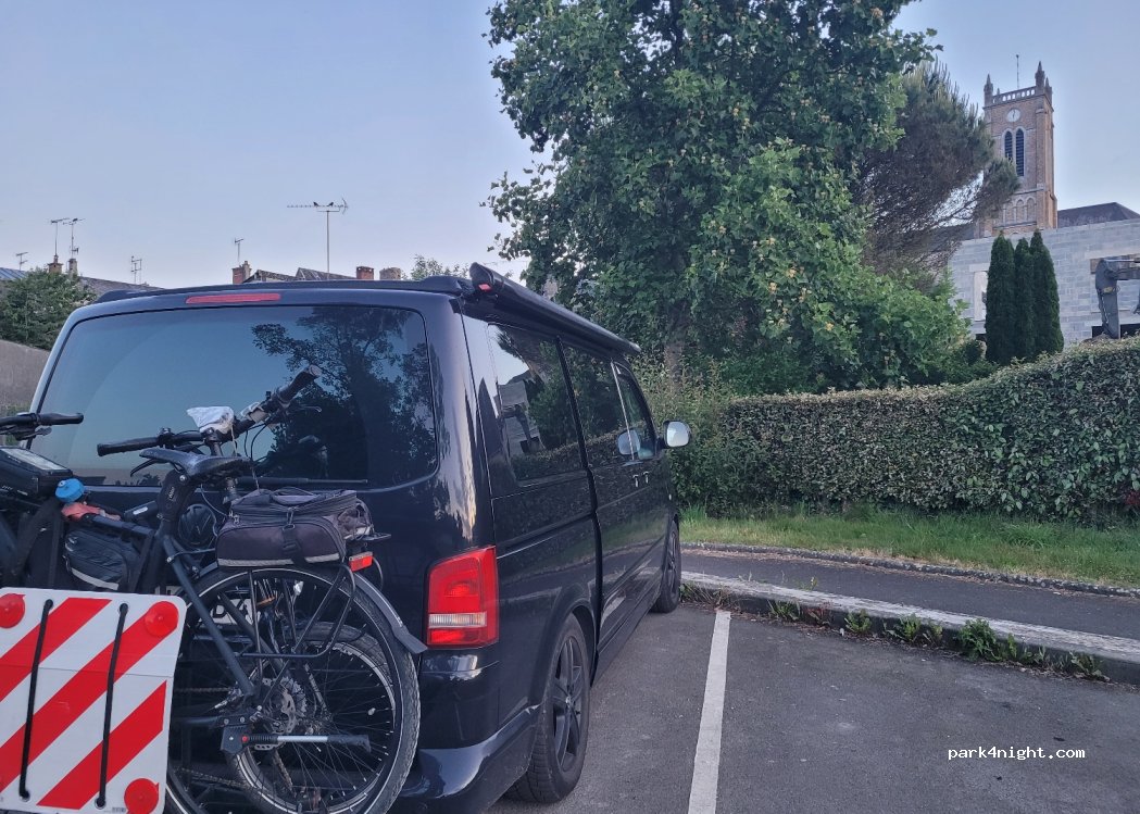 parking en ville, legere pente, eglise sonne jusque 22h et reprends à 7h. bien pour une nuit
