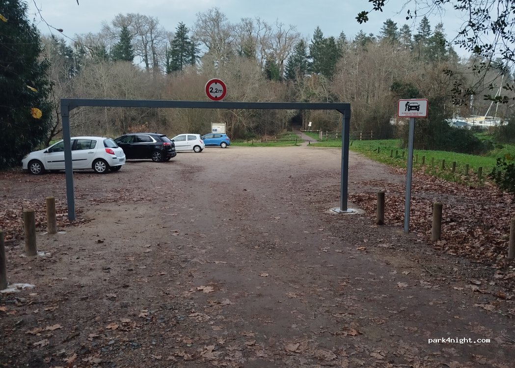 parking entouré d arbres ,passé une nuit tranquille en van avec quelques CC. départ de balade le long de l erdre ,pas de limitation en hauteur.