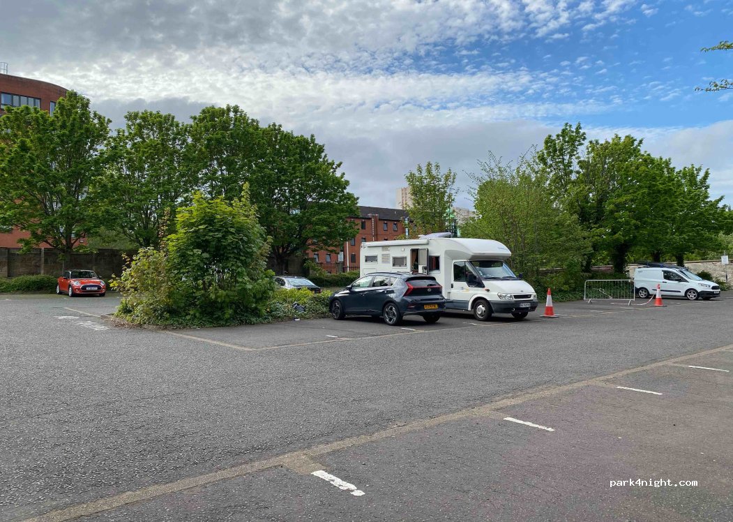 I've previously lived in Glasgow for many years and never knew this car park was really here. It's discrete and quiet. Ideal if you're looking for a central park up to see the city, and not too expensive for overnight parking. Some have said that it isn't flat, but I didn't notice this when I stayed here.