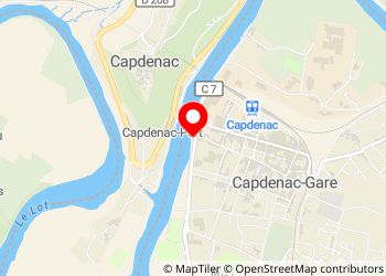 Mooie plek voor de lunch. Parkeren is naast drukke weg. Uitzicht over de Lot. Er is op zaterdag in het dorp markt. Vlak bij kleine dam. Kano's moeten daar het land op om voorbij het dammetje te komen. Overdekte picknicktafels. En bankjes langs de Lot. Er is ook een speeltuintje.