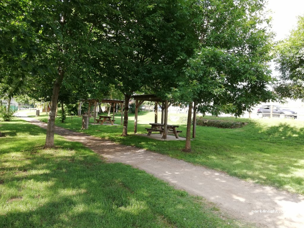 Small air of rest for picnic at the water's edge near a playground for children and a bautic base. Picnic table with carpor, and trash can. Very pleasant. Possibility of parking even in a motorhome along the road