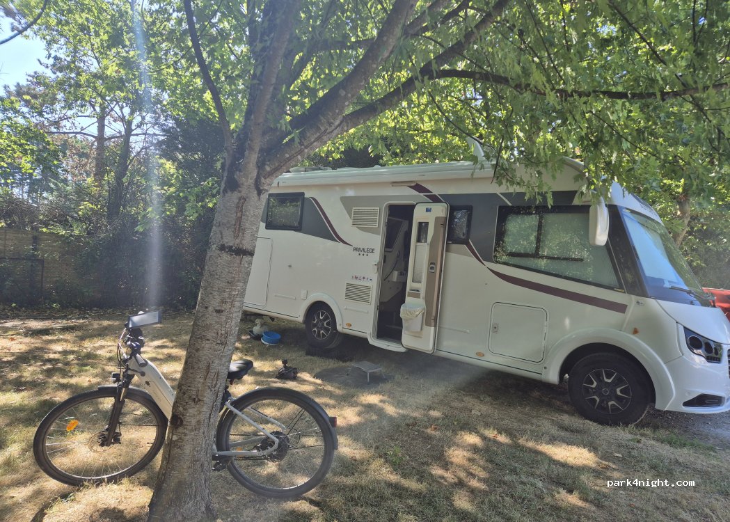Stationnement très facile d’accès ( même très grand véhicule)plat et sur sol enrobé les commerces sont à 5/6 minutes à pieds (pas de service ) toilettes très propres à 130 m …belle promenade à faire à pieds ou en vélo le long de la Charente (voir le champ des cigognes) Merci à la commune pour autoriser lés stationnements nocturnes