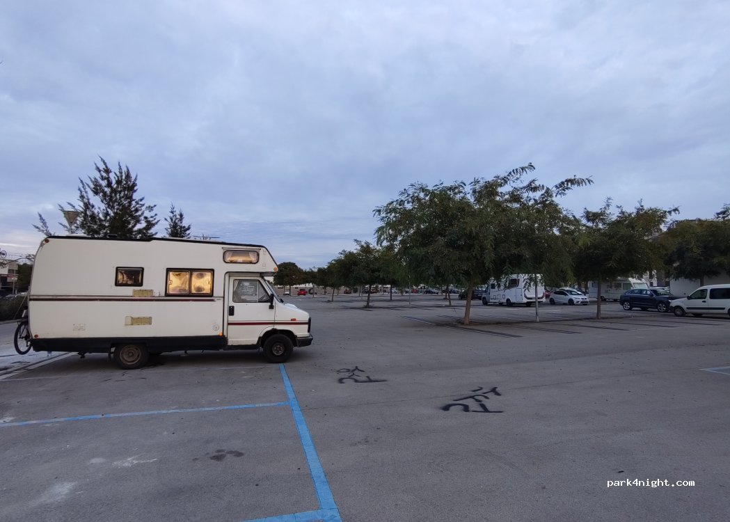 Parking asphalté juste à côté du Mercadona, la police nous a redirigé vers cet endroit, nous avons passé la nuit 4 camping-cars et 2 camping-cars