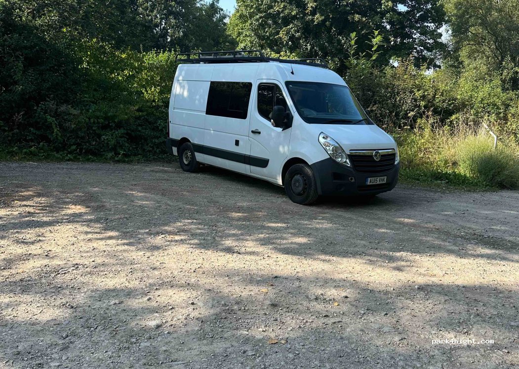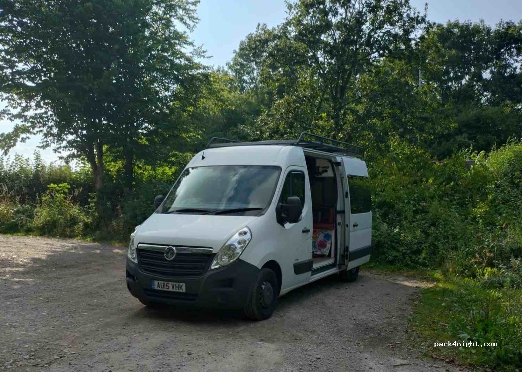 Great place!! Hidden gem. If only local kids didn’t come and ruin it at 11.30 with their loud exhausts and doing donuts next to camper. So sad for local residents and animals. Busy road near by but right inside a nature reserve. No height restrictions and very roomy.