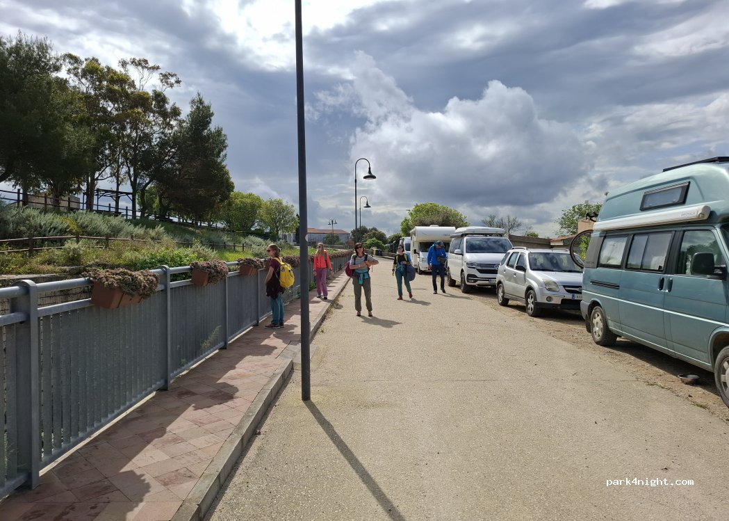 Parcheggio all'inizio del sentiero in una delle principali aree di arrampicata nel nord-ovest dell'isola. Di fronte si trova un parco multi-avventura (attualmente chiuso il 04/07/21) e un'area picnic. Nella zona di arrampicata c'è anche una via ferrata con vista sul lago. Ci sono bidoni della spazzatura all'inizio della strada e una fontana a pochi metri di fronte al punto informazioni. Sopra, sembra che stiano costruendo una piscina comunale. La città è un po' deserta ma è bella da visitare. Non abbiamo avuto problemi e abbiamo trascorso diverse notti qui.