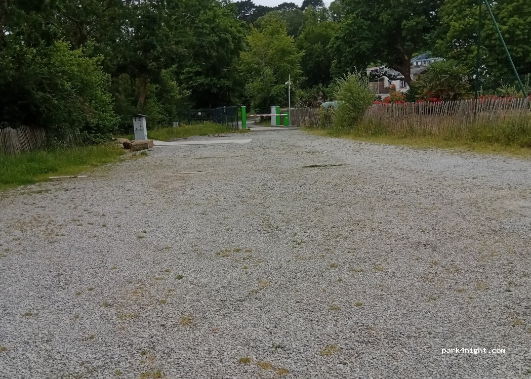 Très bel emplacement, spacieux, plat, ombragé et à l’abri du vent. À côté du camping Trézulien. Nous y avons passé 1 nuit (un peu bruyant jusqu’à 22h30 car terrain de foot du camping juste à côté et une colonie de vacances y jouait mais comme il n’y a pas d’éclairage ça ne s’éternise pas la nuit tombée). Très calme le reste de la nuit. Services: eau et cassette. Manque plus que l’électricité ?. En effet il s’agit d’un Camping Car Park mais il y a la possibilité d’acheter une carte d’abonnement à 5€ directement à la borne si, comme nous, vous n’en avez pas.