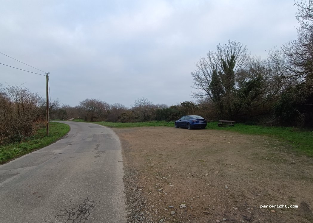 Endroit au calme. Dépanne bien pour une nuit car tout est payant ou interdit aux alentours. Nous étions en van et nous nous sommes placé un peu avant le lieu indiqué au niveau du croisement sous l’arbre pour bénéficier de l’ombre le matin. Attention quelques papiers au sol donc merci de respecter les lieux. Route peu fréquente pour un lundi matin. Quelques passages avec des personnes en vélos.