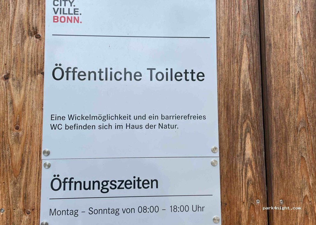 Good place to stay for 1-2 nights (we choose Monday and Tuesday when the restaurant is closed). Toilet at 50m. Very very crowded during the day but calm area at night. Ok to park with a <6m in the evening. Immediate access to forest and wild park. Bonn is accessible by bus at reasonable cost ( we used « Klima ticket » for 9.90€ for 24h up to 5 persons). Bonn city center is a great place to visit…