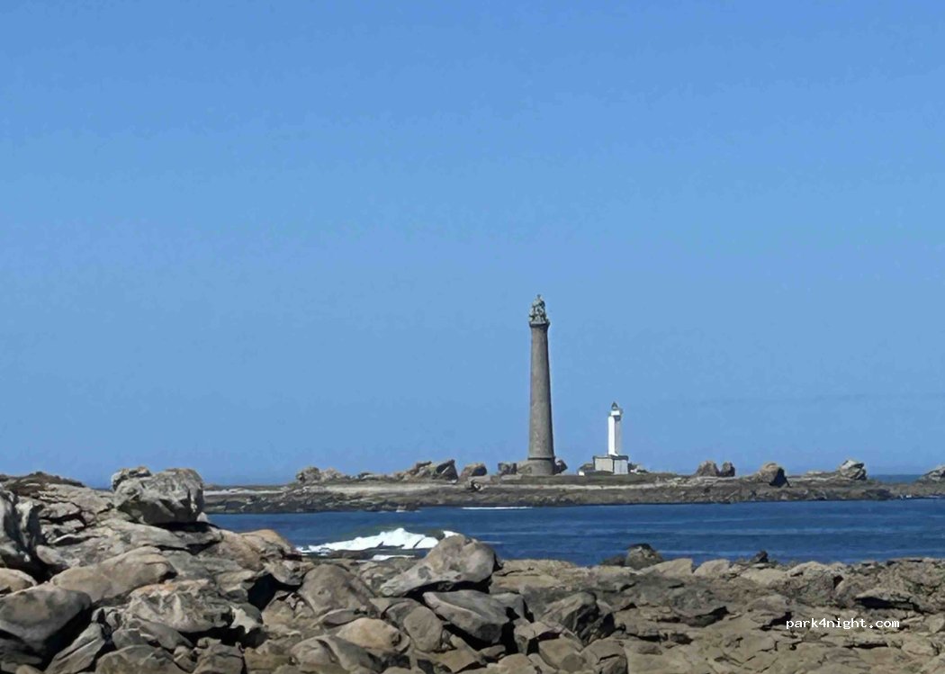 Au bord d’une petite plage de sable blanc et pas loin de gros rochers donnant sur le phare de l’île vierge. Peu de passage, parfait pour y passer la nuit.
