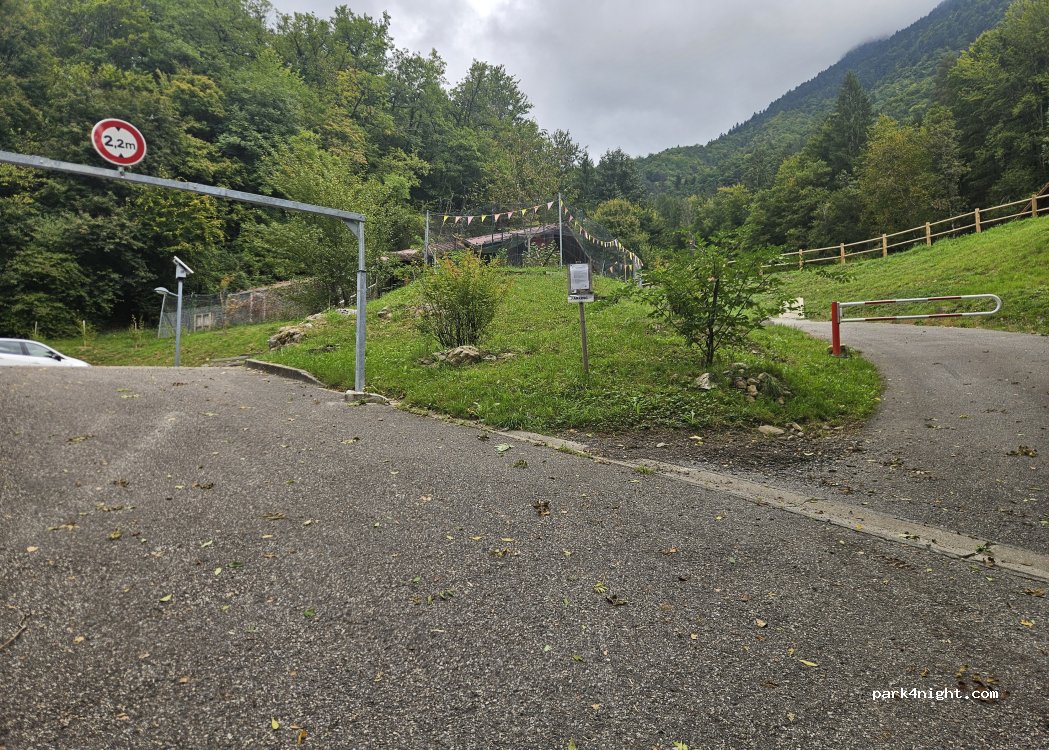 fermé par une Barrière et parking municipal avec Hauteur limite 2.20m. très bien pour un van et pour déjeuner