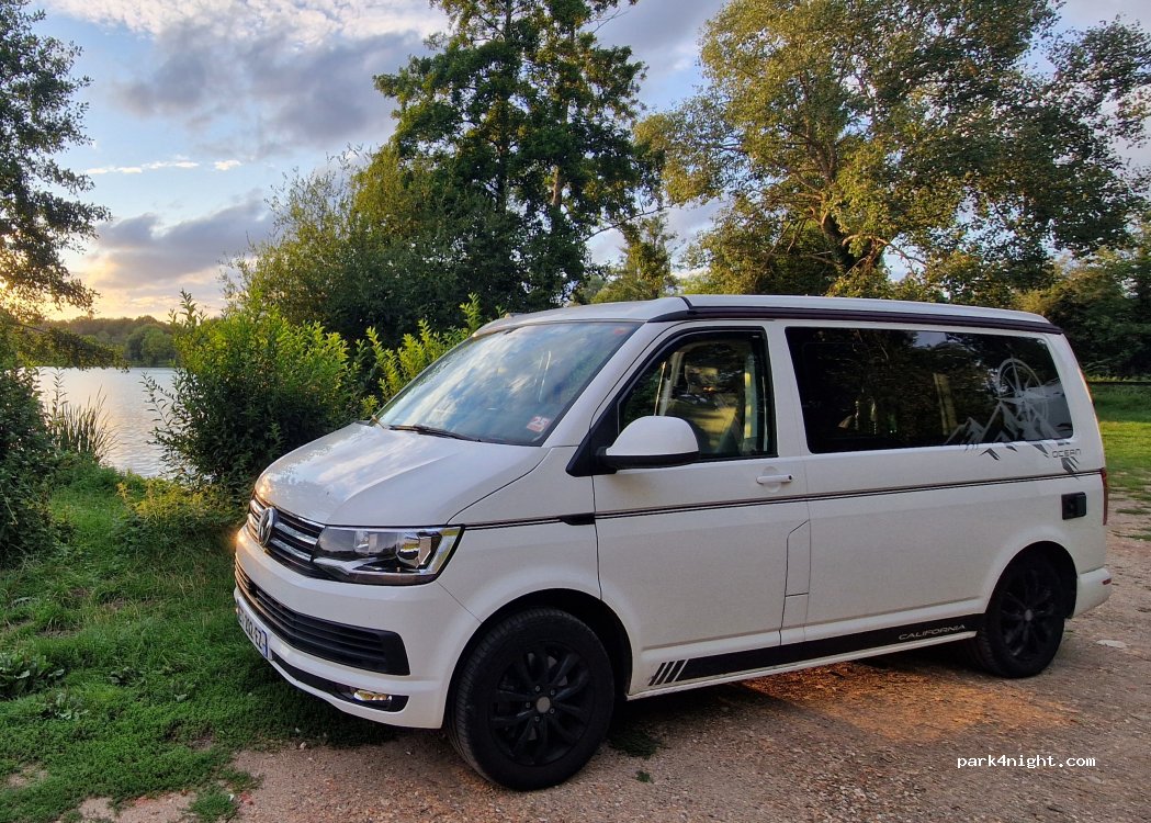 Tres bon emplacement en pleine nature sur un plan d’eau. Parking avec terrain un peu accidenté. Poubelles accessibles. Réveil au matin par pêcheurs et jeunes profitant de l’eau. Un bon spot agréable tout de même.