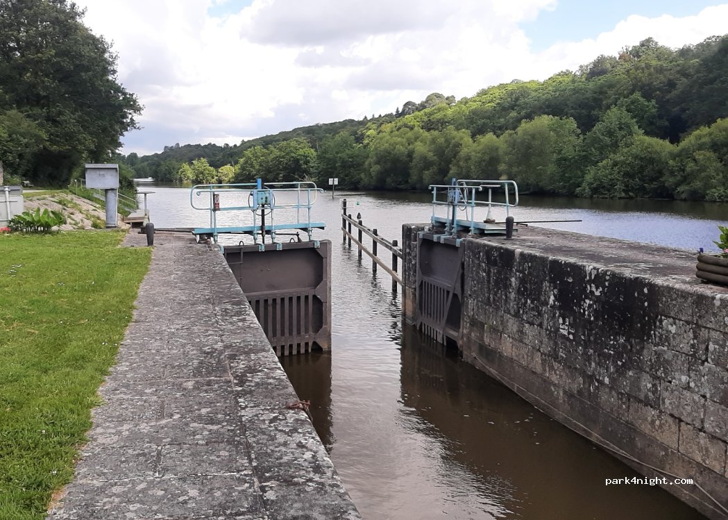 Parking tranquille le long de la Mayenne. Proche écluse de Bonne. sur le chemin de halage.