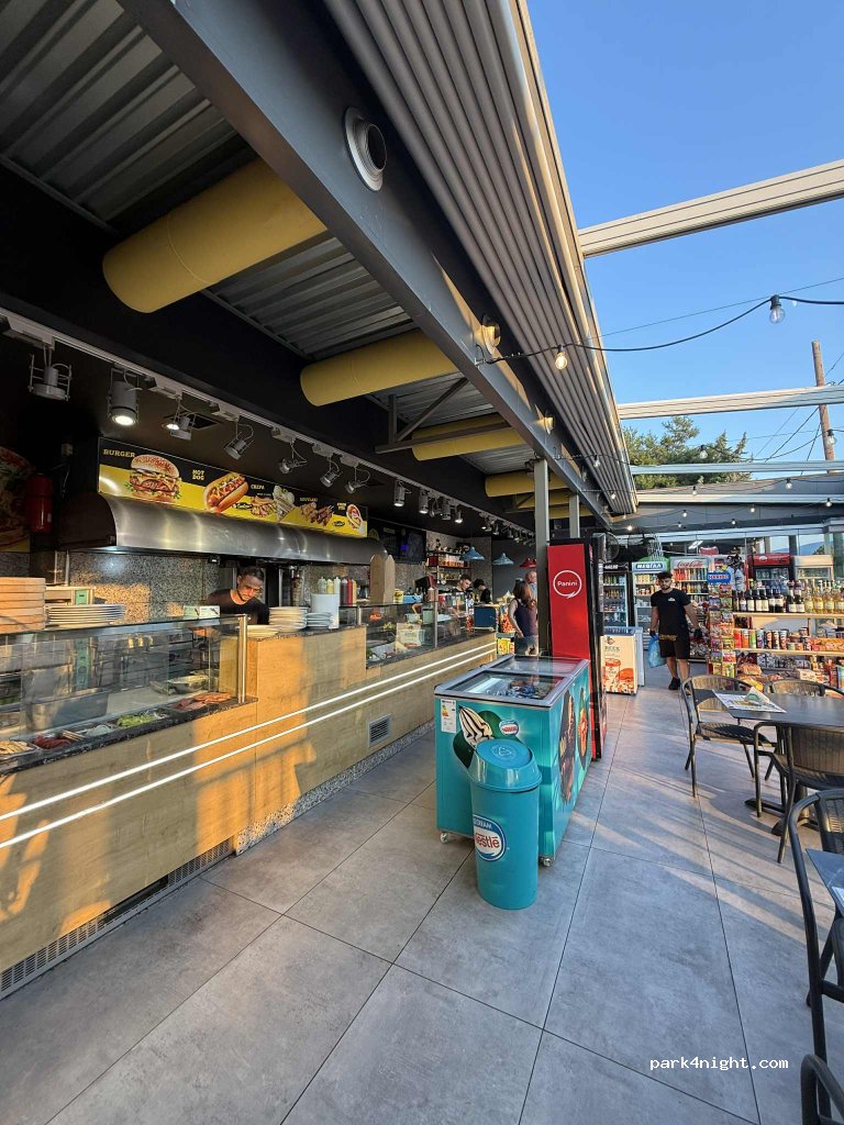 Entspannen Sie sich in sauberen, einladenden Einrichtungen und genießen Sie den atemberaubenden Blick auf den Olymp und den Thermaischen Golf. Vor Ort finden Sie eine Bar, ein Restaurant, Fast Food, einen Minimarkt sowie Kaffee und Frühstück – alles, was Sie für einen perfekten Urlaub benötigen! 365 TAGE GEÖFFNET