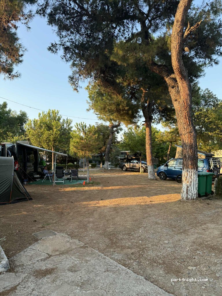 very friendly staff. Hot water all the time. very quiet, despite the fact that most of the campsite has permanent guests. Only the beach is worse, 200 m further on it is a little better. We paid a little less than 40 euros per night (camper, 2 adults, 2 children) - still a bit high price for what they offer.