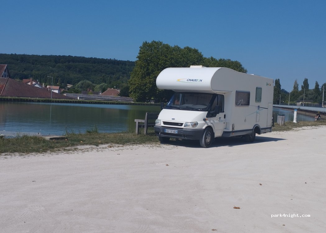 Parking only. No service. At the edge of the Burgundy canal. Near the city center and shops. Electricity possible but with royalty.